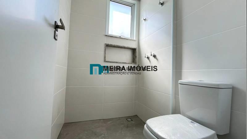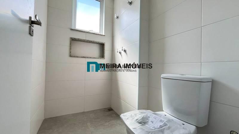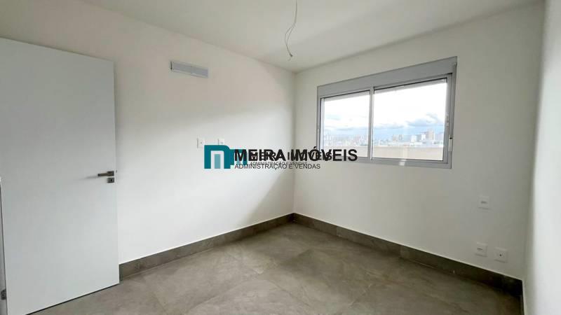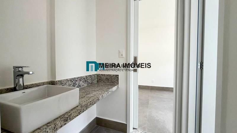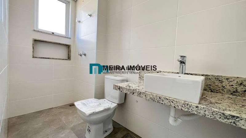 1 quarto amplo com piso em porcelanato, sendo a suíte com bancada em granito e pia em cuba de apoio