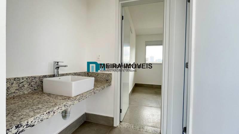 Lavabo com pia em cuba de apoio e bancada em granito
